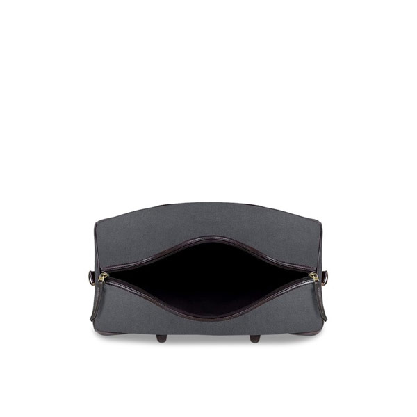 Grey and black solid medium duffle bag, has two short handles